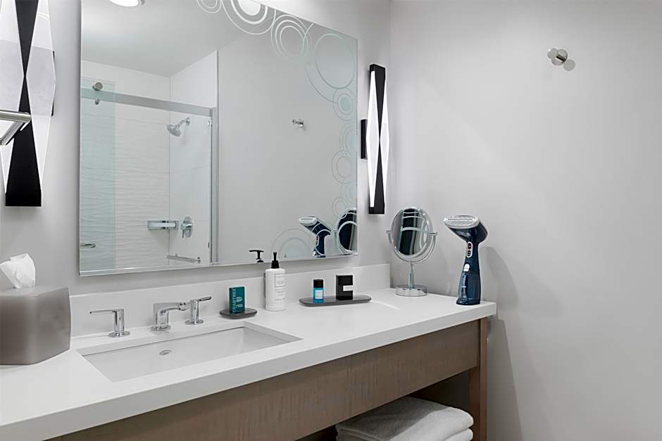 This mobility accessible suite includes a roll-in shower and flat-screen TV.